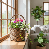 手提げバッグの他、鉢カバーやダストボックスとしてもご使用いただける、一本手のかごバッグです。