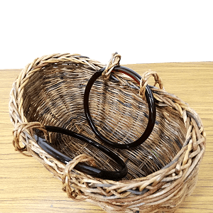 黒の強いあけび蔓も所々使用していますが、手作り感と相まり色ムラも味わいになっています。