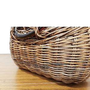 かご部分は、並編みと呼ばれるシンプルな編み方で編んでいるため、編地表面の凹凸が緩やかで、すっきり使いやすい作りになっています。