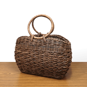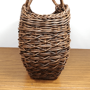 篭の上部に並編みと呼ばれる、かご編みの中でも最もシンプルな編み模様で、かごのデザインに変化をつけており、2種類の模様を楽しめます。