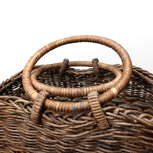 かごの縁止め(口部分)はフタコブ状に仕上げ、中央にリング手と呼ばれる持ち手をつけています。