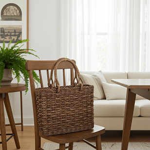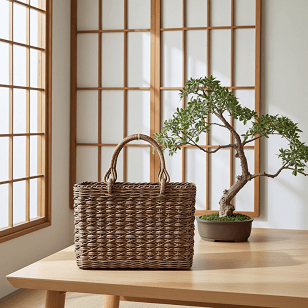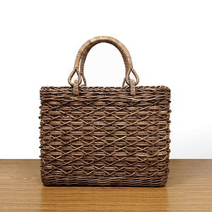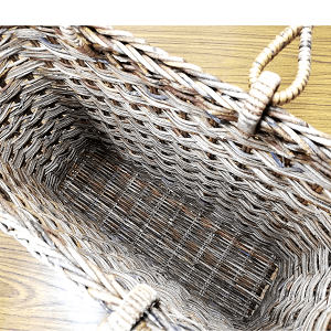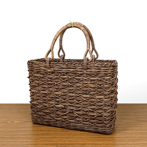 たすき編みの模様と四角底・薄型がバランスよくマッチしており、おすすめのあけびかごバッグです。