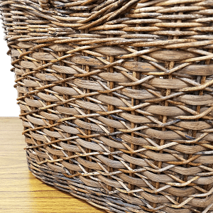 かごの編地は、山葡萄の蔓を均一に割いた材料を贅沢に使用し、たすき編みと呼ばれる編み模様で仕上げています。