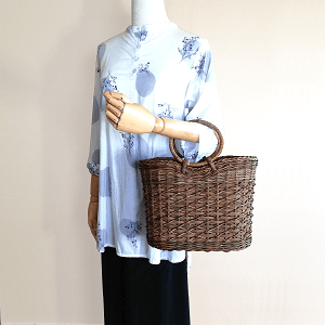 こちらの商品は、たすき編みの中に山葡萄(やまぶどう)の蔓をふんだんに使用したかごバッグです。