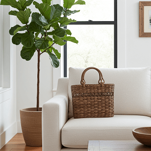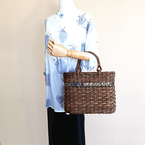 ふたつの模様を一度に楽しめる贅沢なデザインが特徴のあけび-かごバッグです。