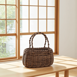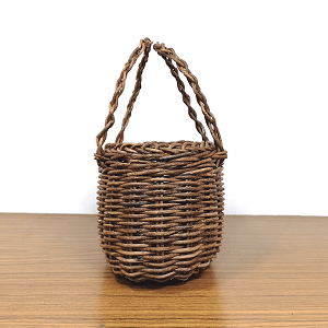 フリーハンドで仕上げた胴張り型の小さなかごに、グニ手と呼ばれる編んだ持ち手を付けたかごバッグです。