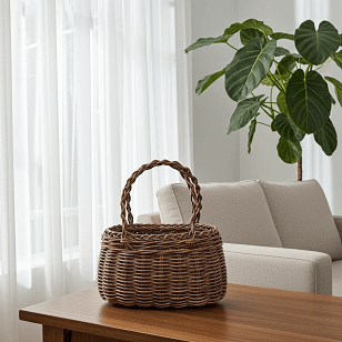持ち手の付け根は篭に根付されていますが、持ち手を優しく開閉していただくと、問題なく物の出し入れが可能です。