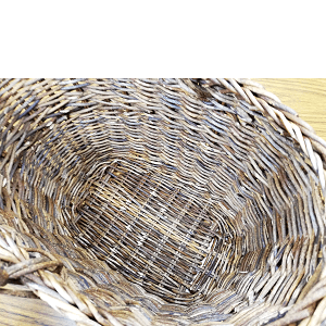 並編みと呼ばれるシンプルな編み方で、かごを意図的に口広に仕上げており、アクセントにかごの中腹に矢羽根模様を編み込んでいます。