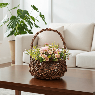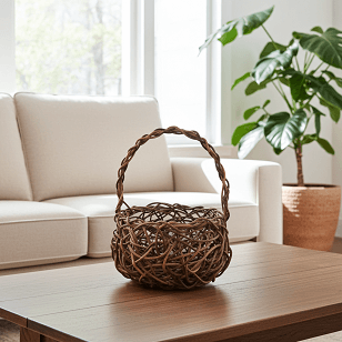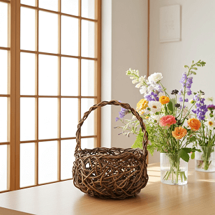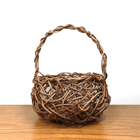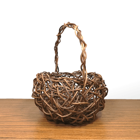 ミニサイズほど小さくなく、深さもあり、適度な大きさのあけびかごですので、小物入れやフラワースタンドなど、お家のいたるところで多用途にお使いいただけます。