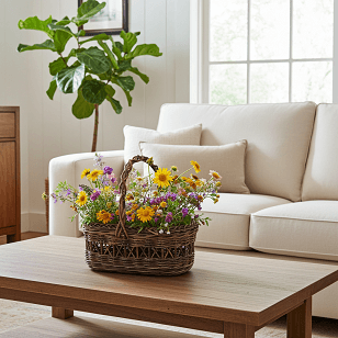 一本手(取手)とかごのバランスが良く、サイズが小ぶりなため、お部屋のいろいろな場所でご使用いただけます。