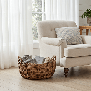 並編みと呼ばれる最もシンプルな編み方で編み組みしており、編地の凹凸が緩やかなため、かごの内部もすっきり機能的にご使用いただけます。