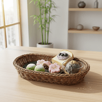 菓子皿やパンかご、小物を整理するかごとしてもお使いいただける楕円型のあけびかごです。