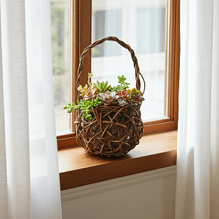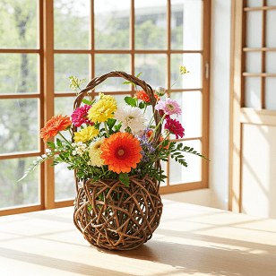 ※かごの中に収まる花瓶の直径サイズは10cm程度です。