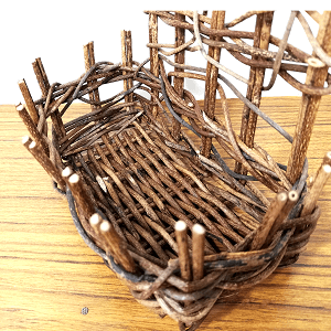 花瓶など、物が安定して置けるよう、かごの底面は凹凸の少ない「並編み」で仕上げています。