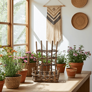 花瓶受けや鉢カバー、状差しとしてもお使いいただけるあけびのフラワーポットです。