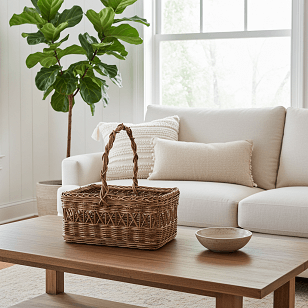 お出掛け用のバスケット、整理ケースや収納ボックスなど、幅広い用途でお使いいただけるあけびかごです。