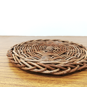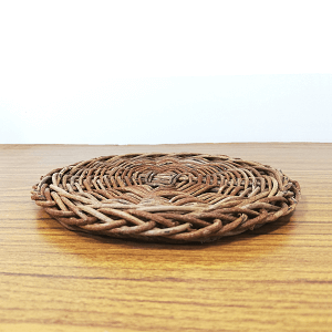 シンプルな平べったいあけび細工なので、鍋敷きの他、コースターや置物を飾る飾り台としてもお使いいただけます。