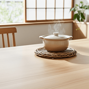 ※熱したヤカンや鍋など、熱をしばらく保つ物を直に置く際には十分にお気を付けください。