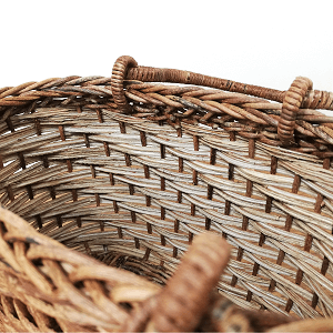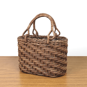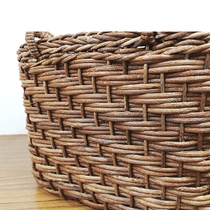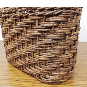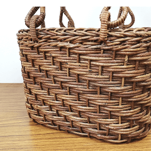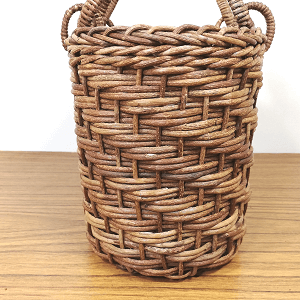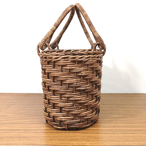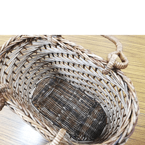 半芯を使用するため、通常の丸芯のかごよりも重量が軽く、かごの内部が白っぽい編み上がりになります。