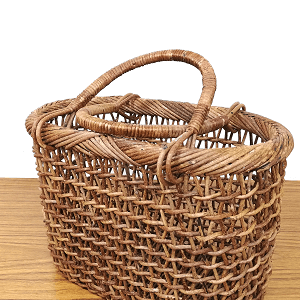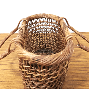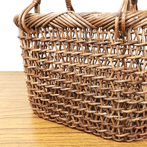 骨組みであるたて芯が蛇行するようにしっかり固定され、かご本体の強度も高く、物を入れてもヨレたり型崩れをすることはありません。※かごが極端に乾燥してしまうと、蔓がやせて編みのゆるみにつながります。