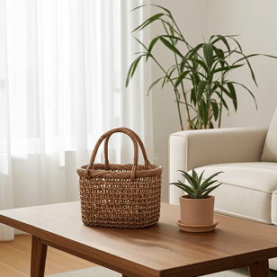 透かし模様の目が細かいので、籠の中に入れたものが丸見えにならず、安心してお使いただけます。