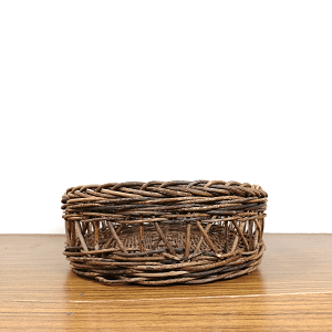 材料不足の影響もあり、黒いあけび蔓を多用したため、かごの色ムラが強く、本来の仕上がりであれば、お値段を1万円前後にするところですが、今回は割引での販売となっております。