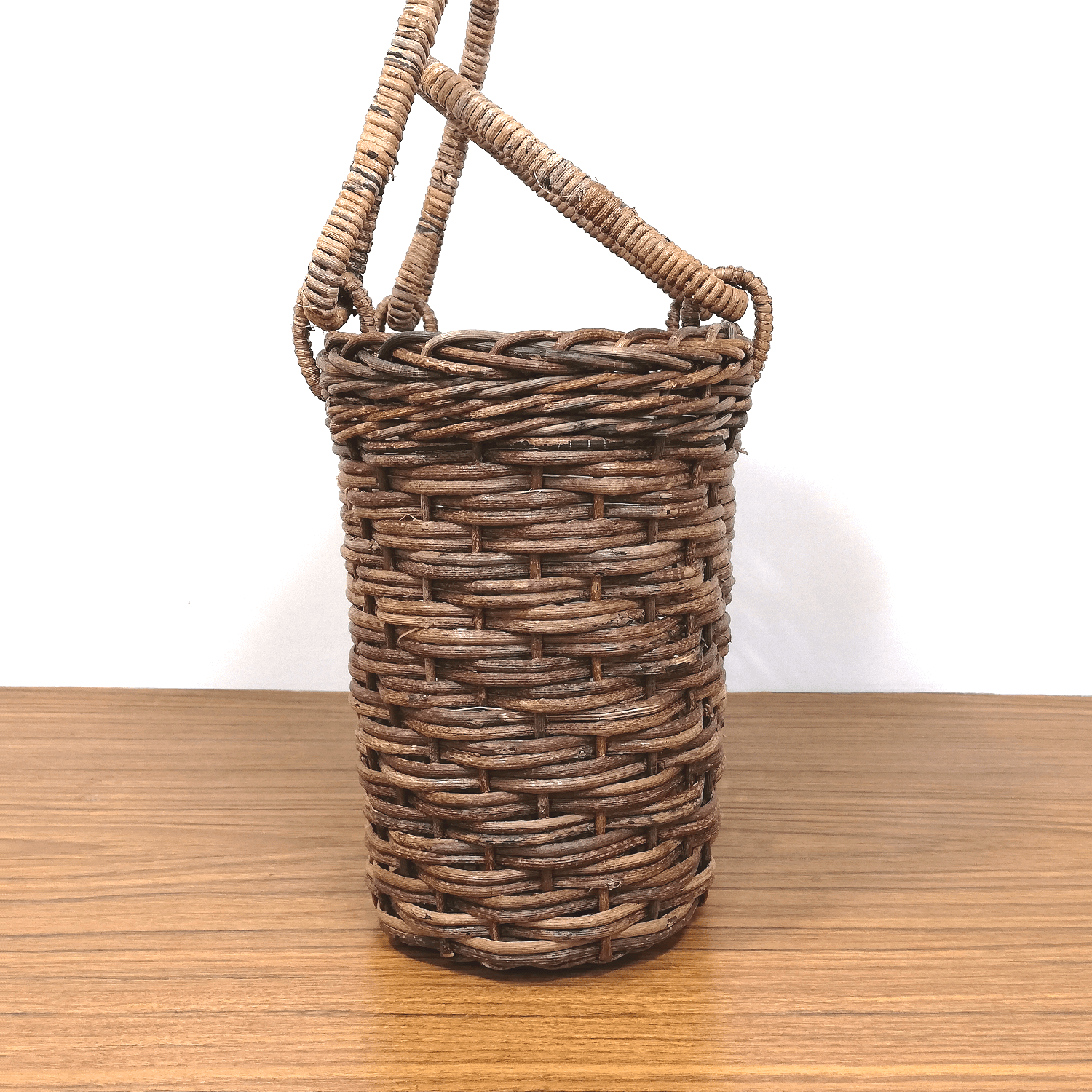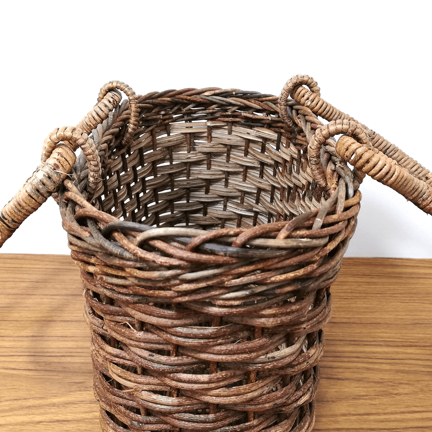 半芯を使用するため、通常の丸芯のかごよりも重量が軽く、かごの内部が白っぽい編み上がりになります。