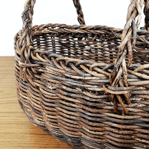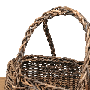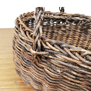 かご部分はフリーハンドでおむすび型に仕上げ、持ち手は6本の蔓を編み込んだ「グニ手」を付けています。