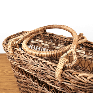 矢来模様(透かし部分)は、かごに軽やかな印象を持たせ、「筋交い」のようにかごを頑丈にしてくれます。